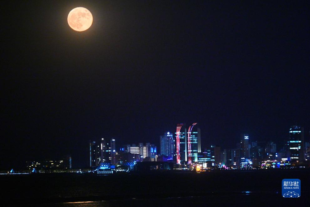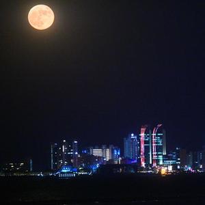 这是8月31日在科威特哈瓦利拍摄的“超级月亮”。