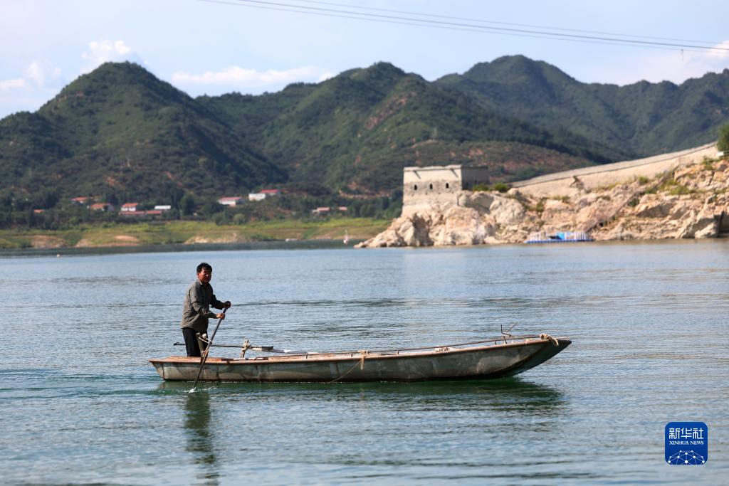 8月30日,衡丙三在潘家口水库上划船行驶,准备巡查长城。