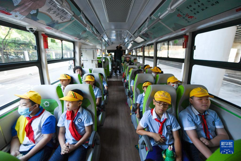 9月1日,许多北京市丰台区第一小学的学生乘坐通学公交车上学。