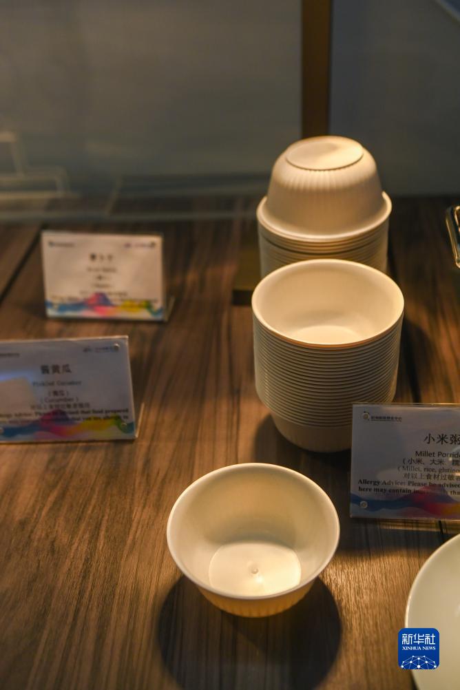 这是主媒体中心媒体记者餐厅内使用的可降解环保餐具(9月1日摄)。