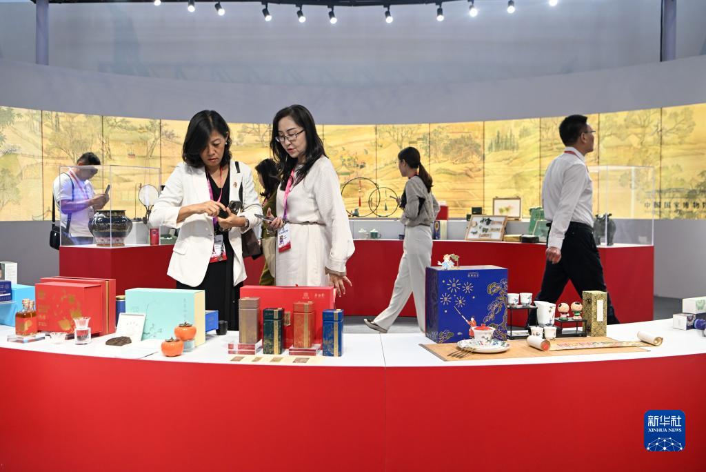 9月1日,参观者在第十三届中国旅游产业博览会中国国家博物馆展区挑选文创产品。