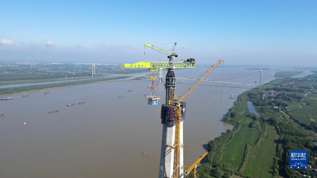 马鞍山公铁两用长江大桥南主塔首节段钢塔顺利吊装