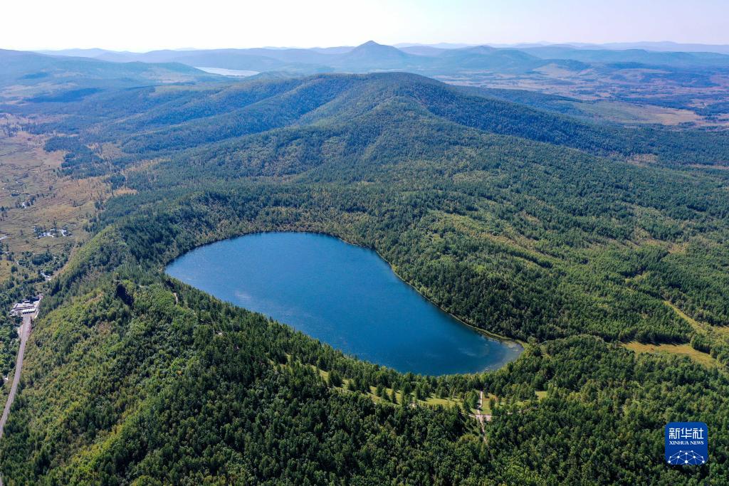这是9月1日拍摄的阿尔山国家森林公园驼峰岭天池景色(无人机照片)。