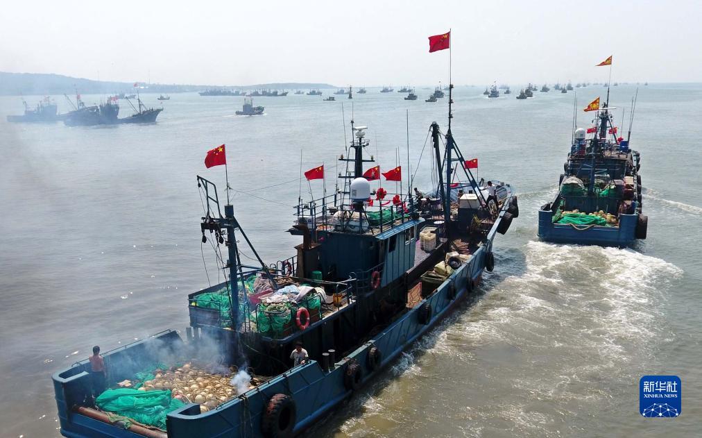 当日,为期四个月的黄渤海伏季休渔结束,所涉渔区迎来“开海”,各渔港码头千帆竞发,渔船出海进行捕捞作业。
