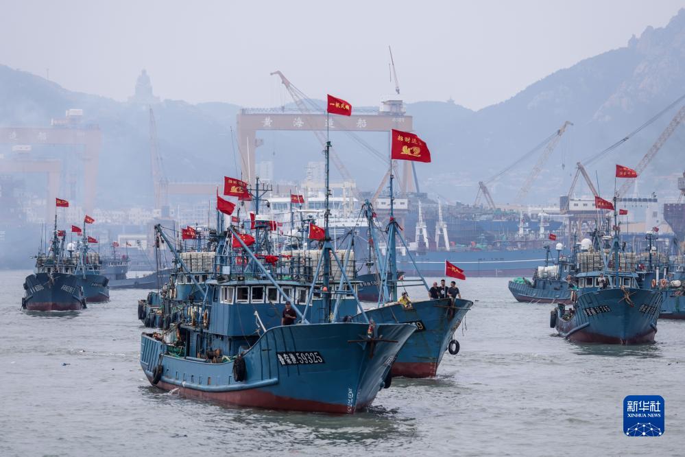 当日,为期四个月的黄渤海伏季休渔结束,所涉渔区迎来“开海”,各渔港码头千帆竞发,渔船出海进行捕捞作业。