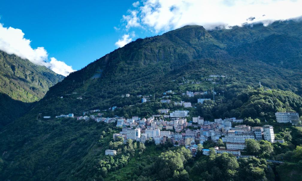 这是9月1日拍摄的西藏日喀则市聂拉木县樟木镇(无人机照片)。