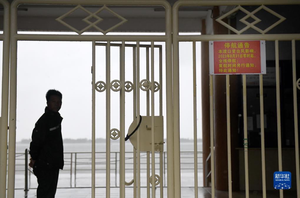 9月1日,工作人员在广东省汕尾市城区中山渡口值班。受台风影响,该渡口从8月31日零时起停航。