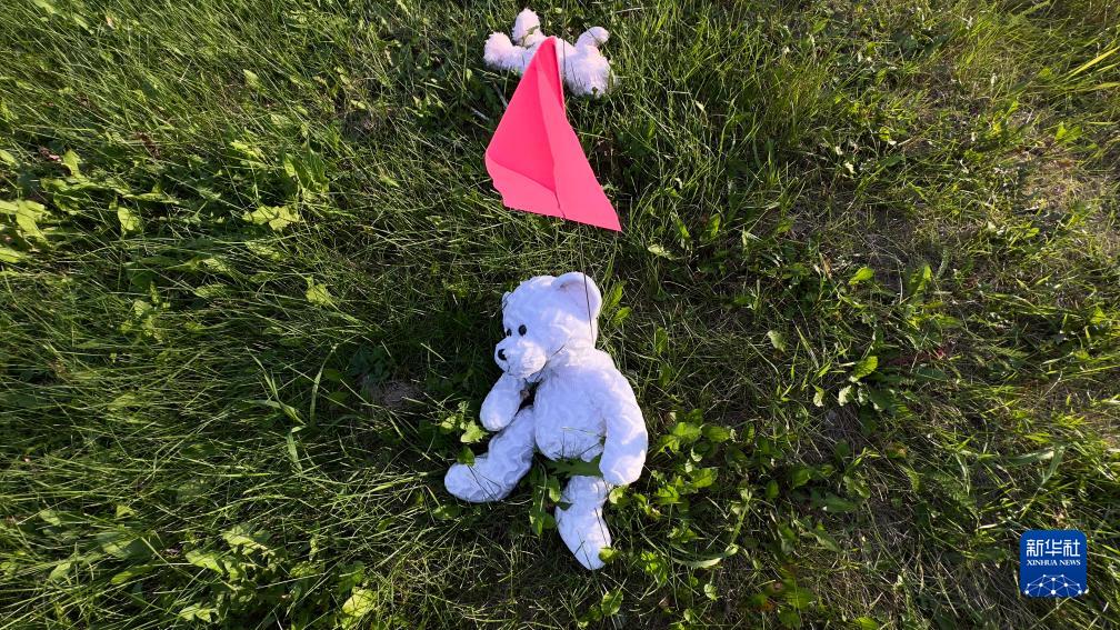 这是8月31日在加拿大萨斯喀彻温省博瓦尔印第安人寄宿学校旧址拍摄的用粉色旗子标出的疑似儿童或婴儿墓地。