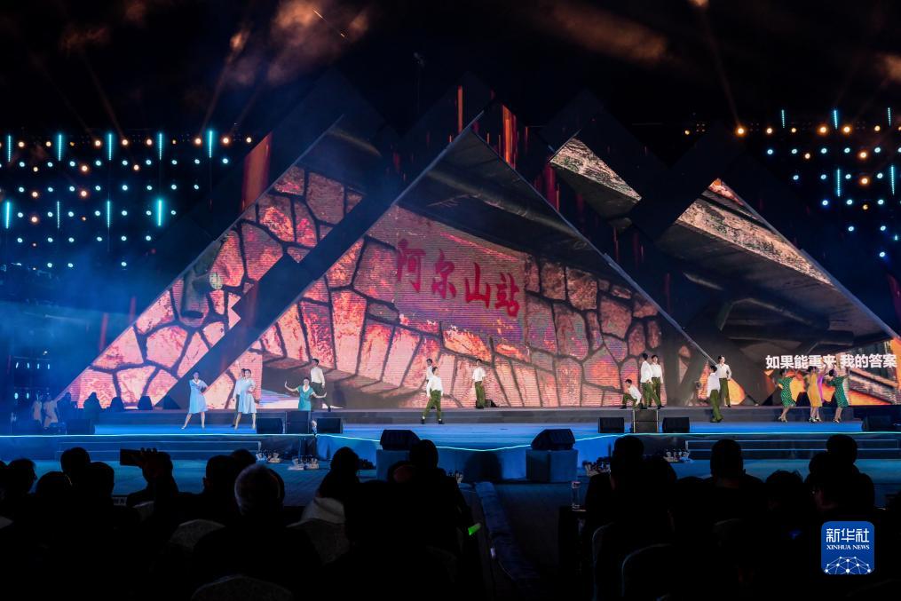 这是9月1日拍摄的“水韵阿尔山”焰火音乐晚会歌舞表演。