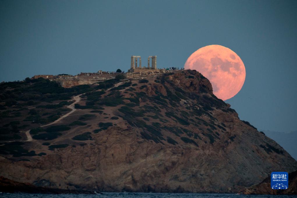 8月30日,“超级月亮”从希腊苏尼翁角的波塞冬庙上空升起。