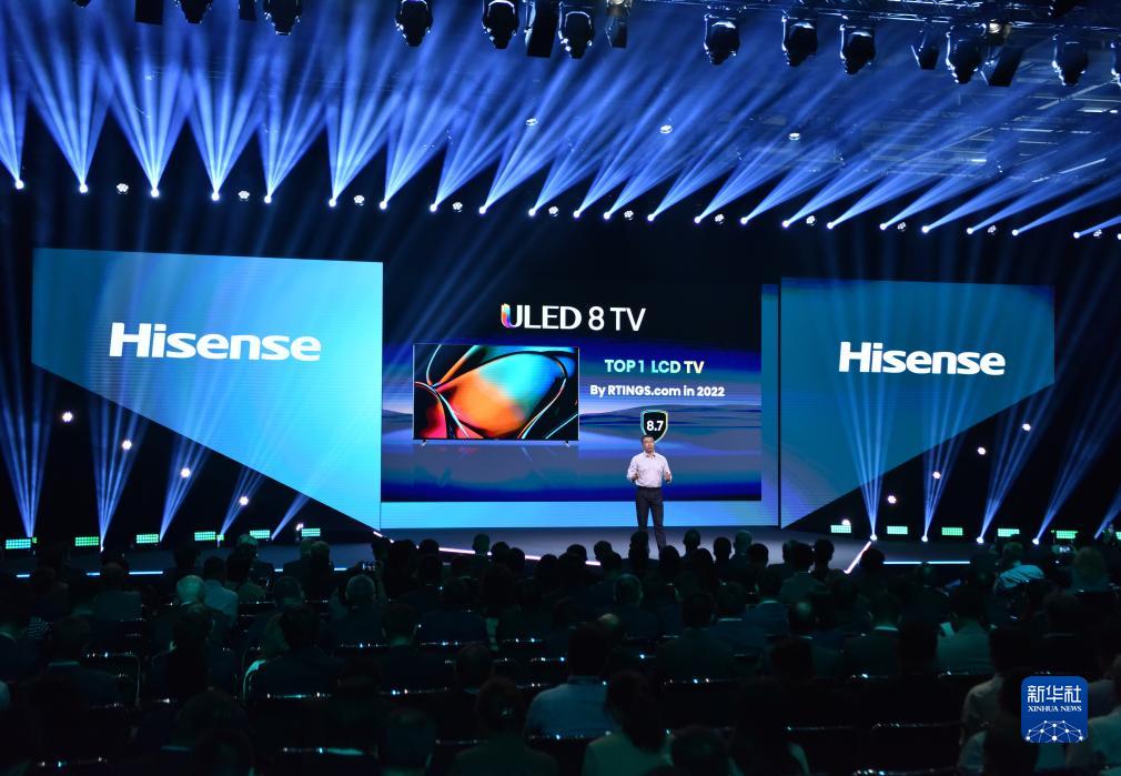 这是9月1日在德国柏林国际消费电子展拍摄的海信主题演讲现场。