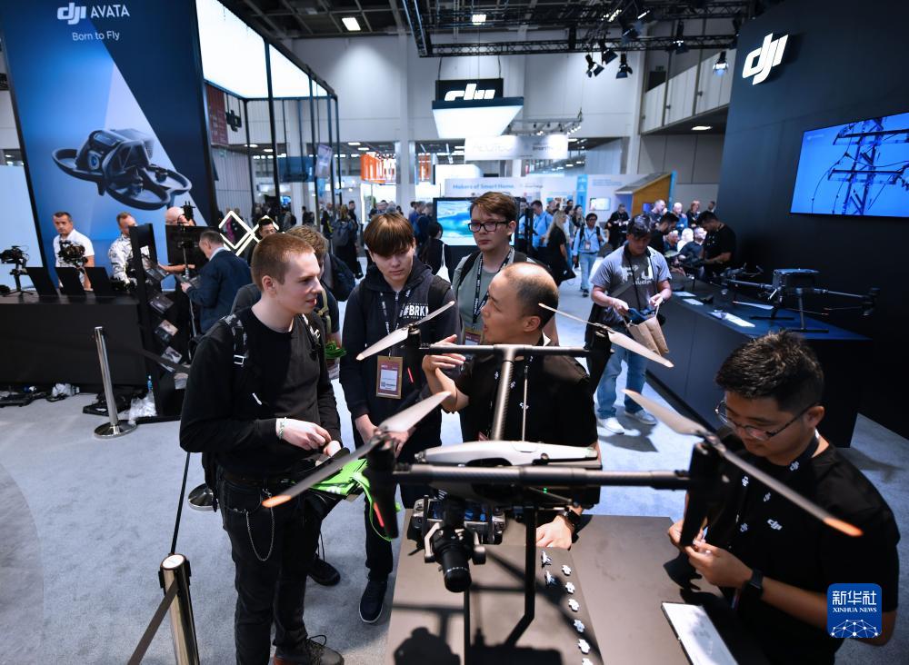 9月1日,人们在德国柏林国际消费电子展参观大疆展区。