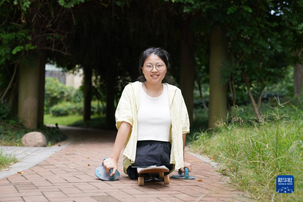 使用滑板出行的蒋张子怡(8月31日摄)。