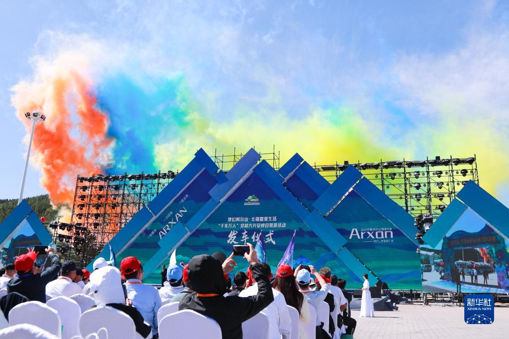 这是9月2日拍摄的“千车万人”穿越大兴安岭自驾游活动发车仪式现场。该活动是此次旅游大会的主体活动之一。