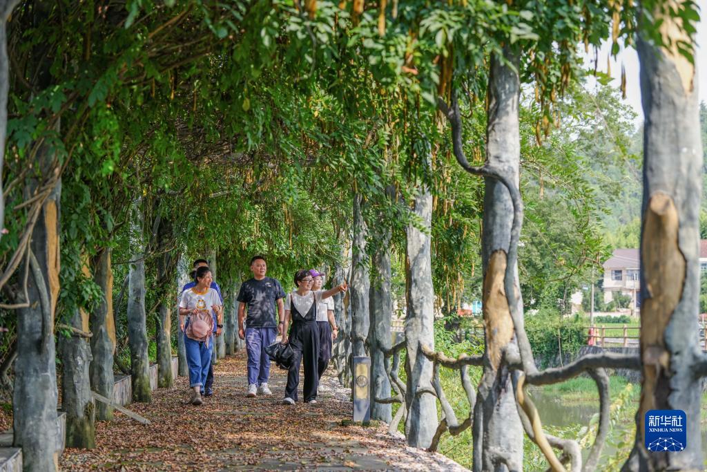9月2日,游客在太阳镇太阳米基地的长廊里游玩。