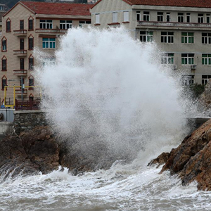 9月2日,浙江省温岭市石塘镇金沙滩海域掀起巨大浪花。