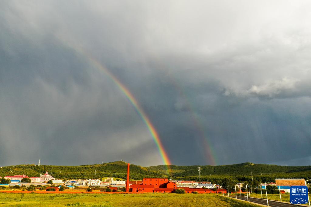 这是8月31日拍摄的阿尔山市的彩虹(无人机照片)。