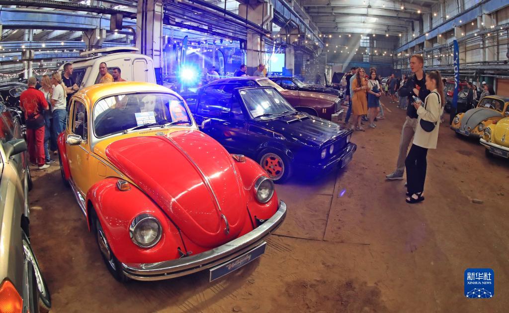 9月2日,人们在白俄罗斯明斯克参观老爷车。