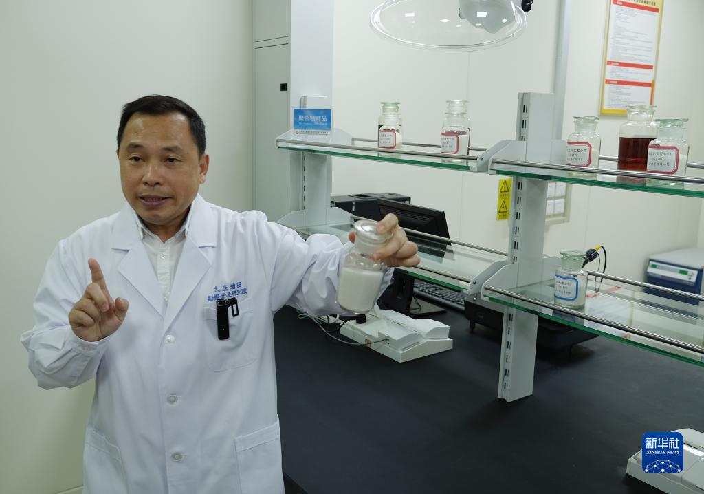 9月1日,大庆油田勘探开发研究院首席技术专家侯兆伟在勘探开发研究院实验中心介绍油田科技研发情况。