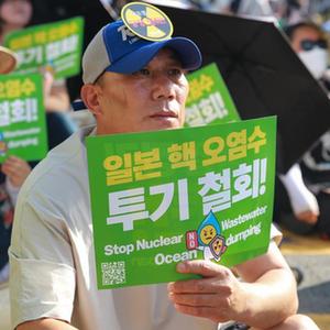 当日,韩国多个市民团体在首尔市中心举行集会,抗议日本核污染水排海。