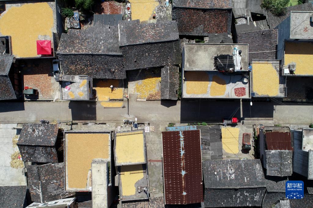 初秋时节,农作物相继成熟,人们忙着抢收、抢晒,到处是美丽的晒秋图景。