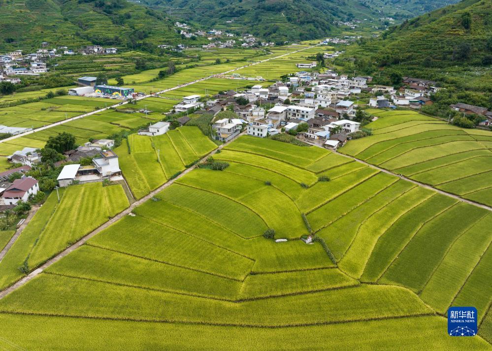俯瞰盐边县惠民镇兴隆村稻田(9月2日摄,无人机照片)。