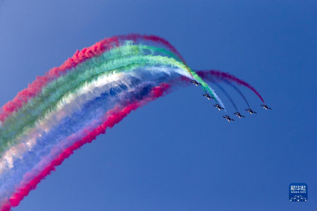 9月2日,在希腊塔纳格拉空军基地的雅典飞行周上,来自阿联酋的飞行表演队进行表演。