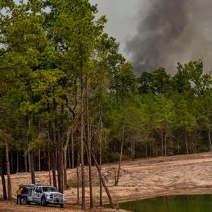 9月2日,美国得克萨斯州沃克县亨茨维尔附近地区被烟雾笼罩。