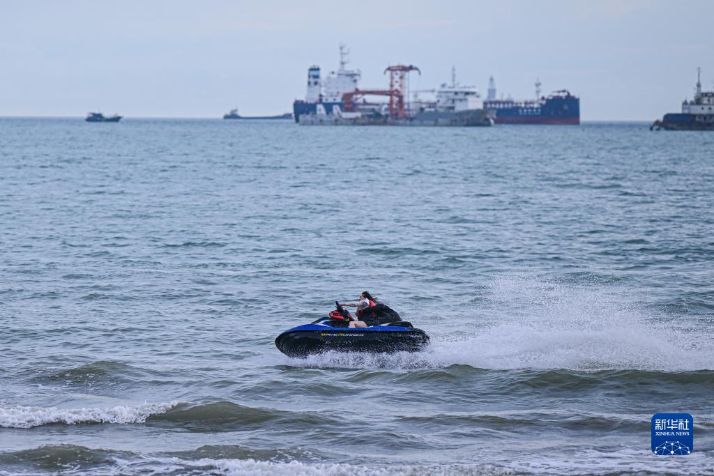 游客在海南省三亚市三亚湾体验水上项目(8月30日摄)。三亚湾位于海南省三亚市主城区南部,海域面积75平方千米,是三亚市作为著名旅游目的地的重要资源依托。