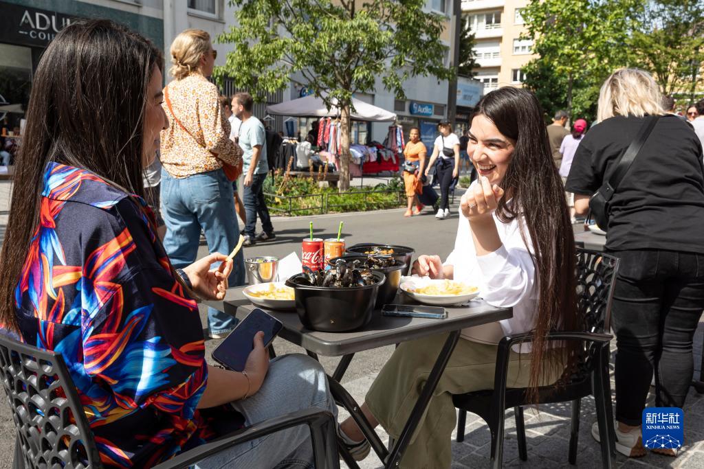 9月3日,在法国里尔旧货市场上,人们品尝贻贝。