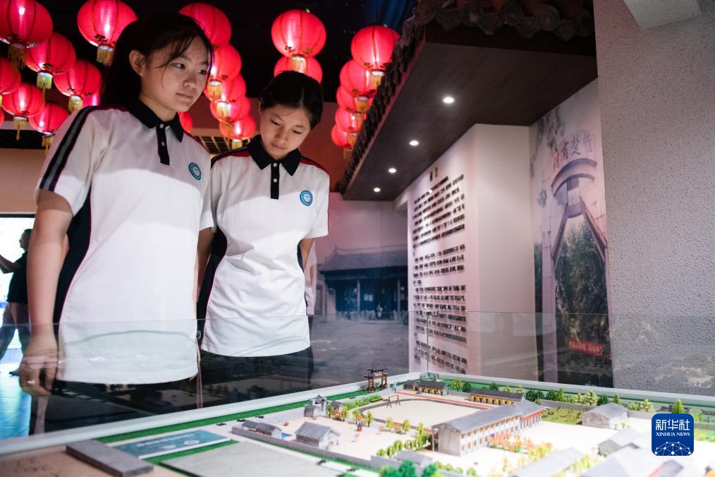 9月4日,湖北省武昌实验中学学生在校史馆参观。