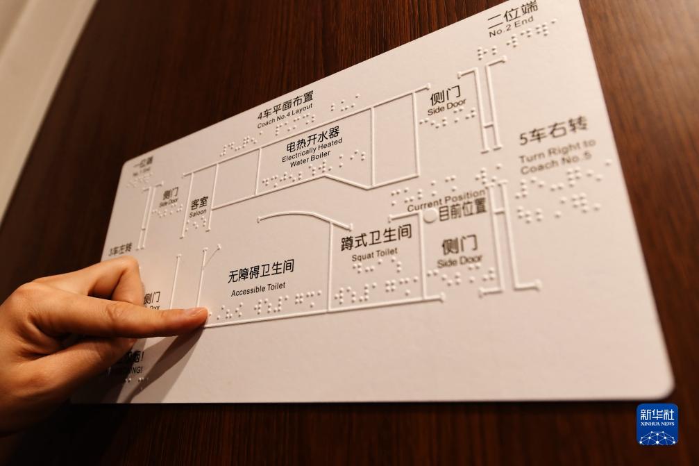 9月4日在G55401次复兴号智能动车组车厢内拍摄盲文触摸指示牌。