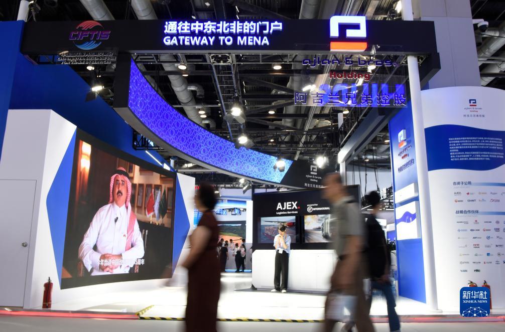 9月4日,观众从服贸会的沙特阿拉伯阿吉兰兄弟控股集团展台经过。
