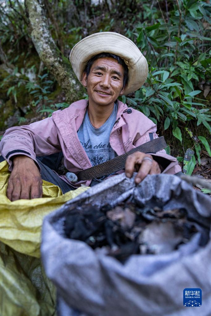 一位“采山人”在展示自己采集到的石耳(9月2日摄)。新华社记者 孙非 摄
