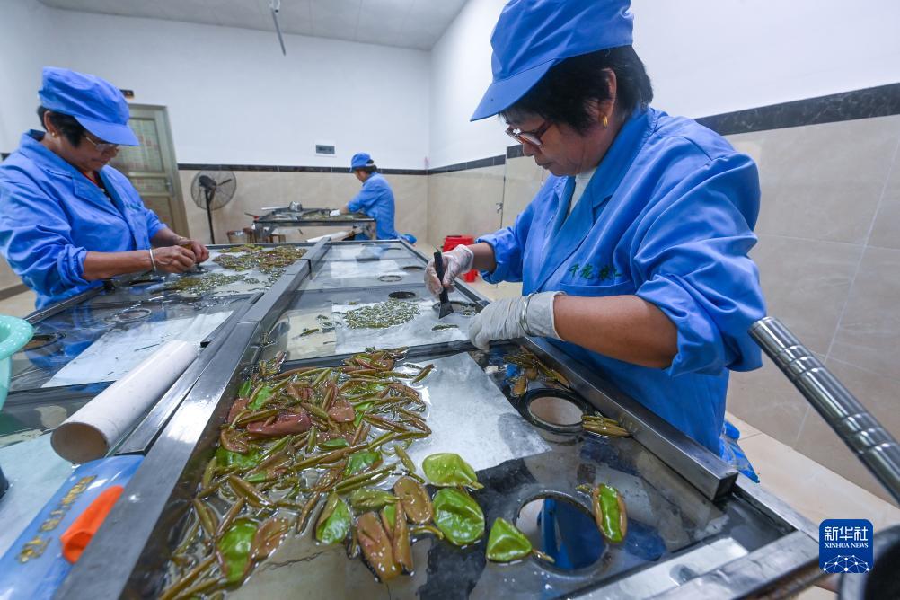 9月5日,在建德市航头镇乌龙村西湖莼菜产业园的车间内,工人在分拣刚刚采摘的莼菜。