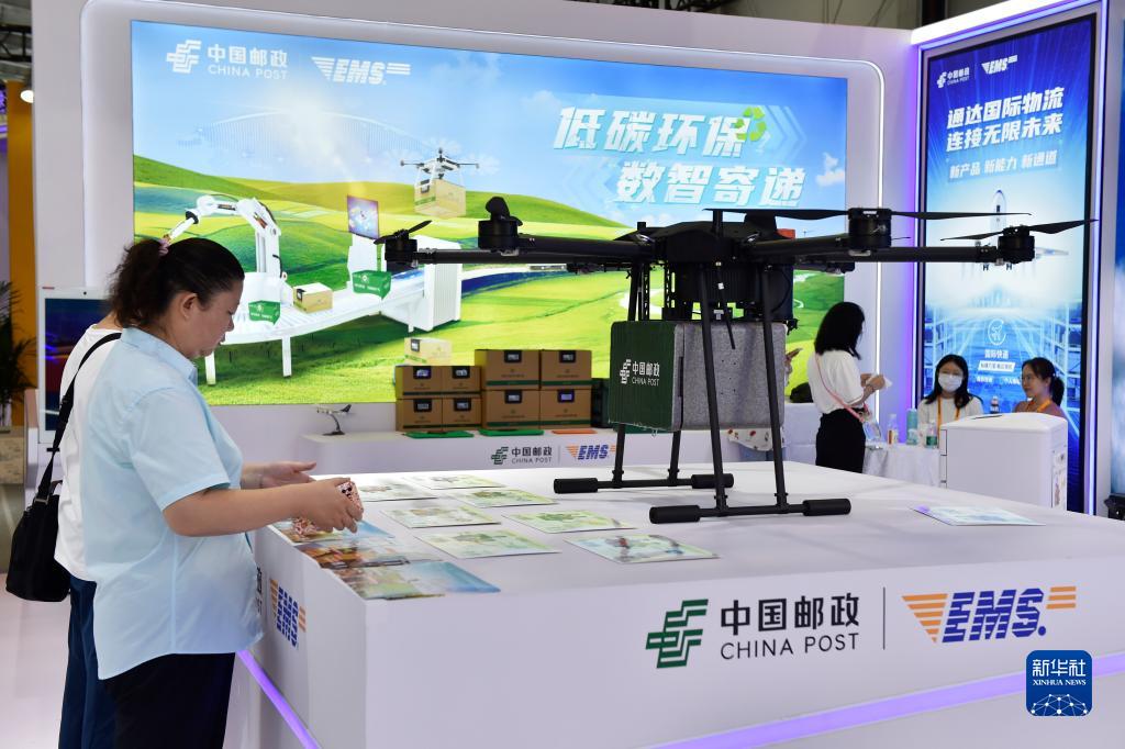 这是9月5日在服贸会首钢园区拍摄的中国邮政多用途网联无人机。
