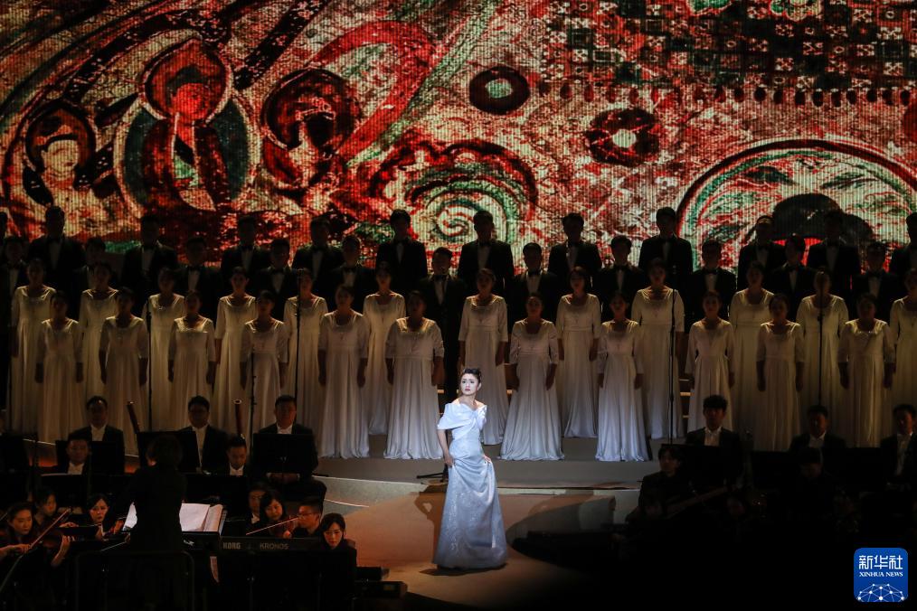9月5日晚,音乐剧《飞天》(音乐会)在位于甘肃省敦煌市的敦煌大剧院上演。本场演出精选音乐剧《飞天》中14首经典唱段,以敦煌飞天为灵感,以“一带一路”为主题,荟萃丝路文化元素,讲述敦煌精彩故事。