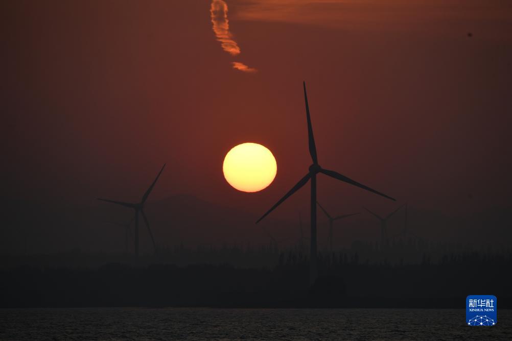 这是9月5日在河北省张家口市怀来县拍摄的夕阳下的官厅水库。