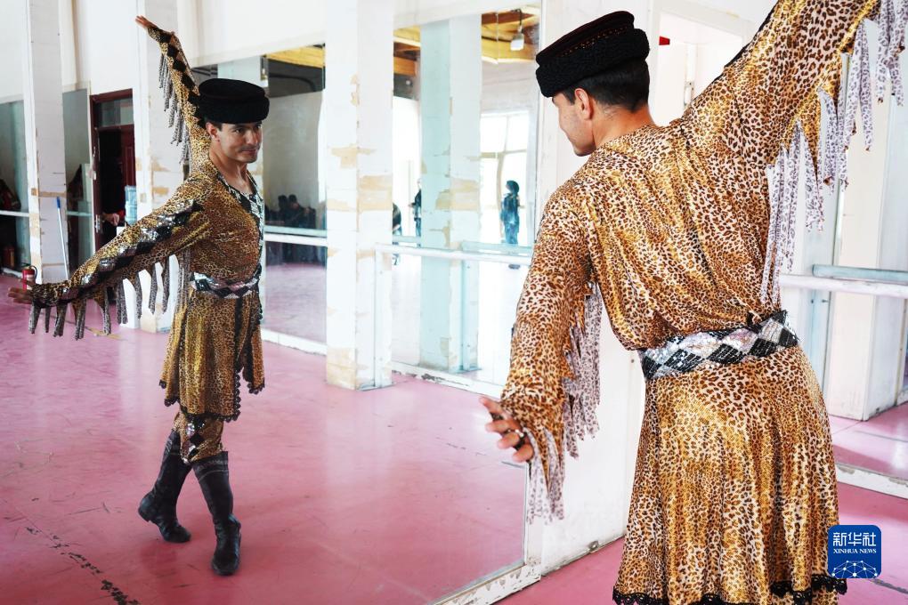 在新疆塔什库尔干塔吉克自治县帕米尔旅游区游客服务中心,县文工团演员在演出前做准备(9月4日摄)。