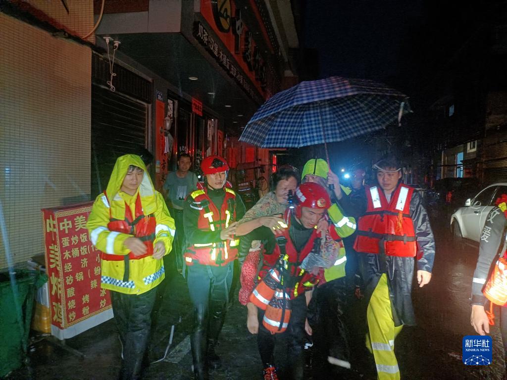 9月6日,在福州市长乐区玉田镇,消防救援人员将一名被困家中的老人背出。