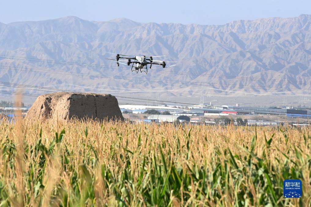 这是9月5日在山丹县位奇镇十里堡村拍摄的“一喷多促”作业现场。