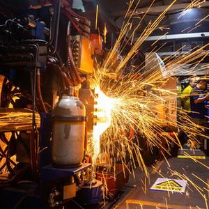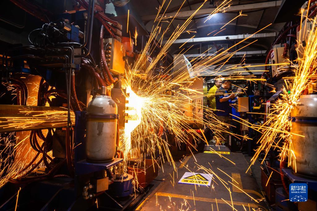 9月6日凌晨,在京广高铁株洲西至衡山西区间,铁路工人操作车载焊机进行焊轨作业。