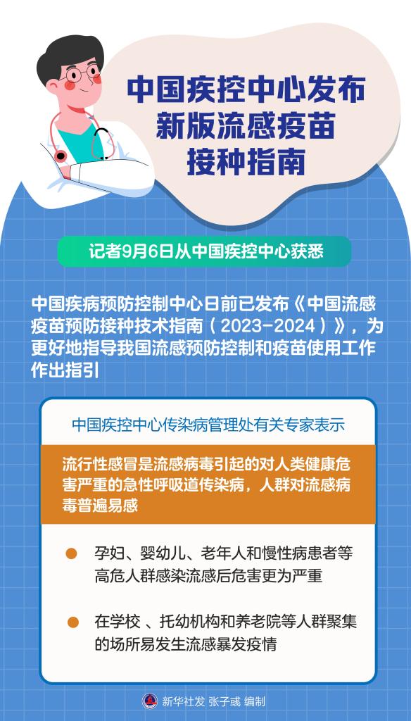 记者9月6日从中国疾控中心获悉,中国疾病预防控制中心日前已发布《中国流感疫苗预防接种技术指南(2023-2024)》,为更好地指导我国流感预防控制和疫苗使用工作作出指引。