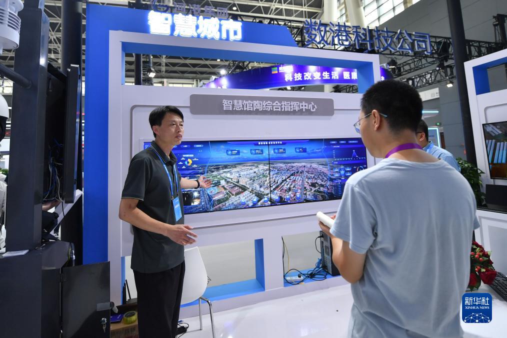 9月6日,在2023中国国际数字经济博览会上,工作人员向参观者介绍智慧馆陶综合指挥中心项目。