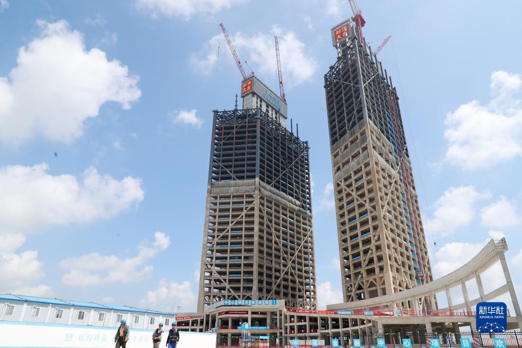 9月6日拍摄的临港西岛中银金融中心项目建设工地。