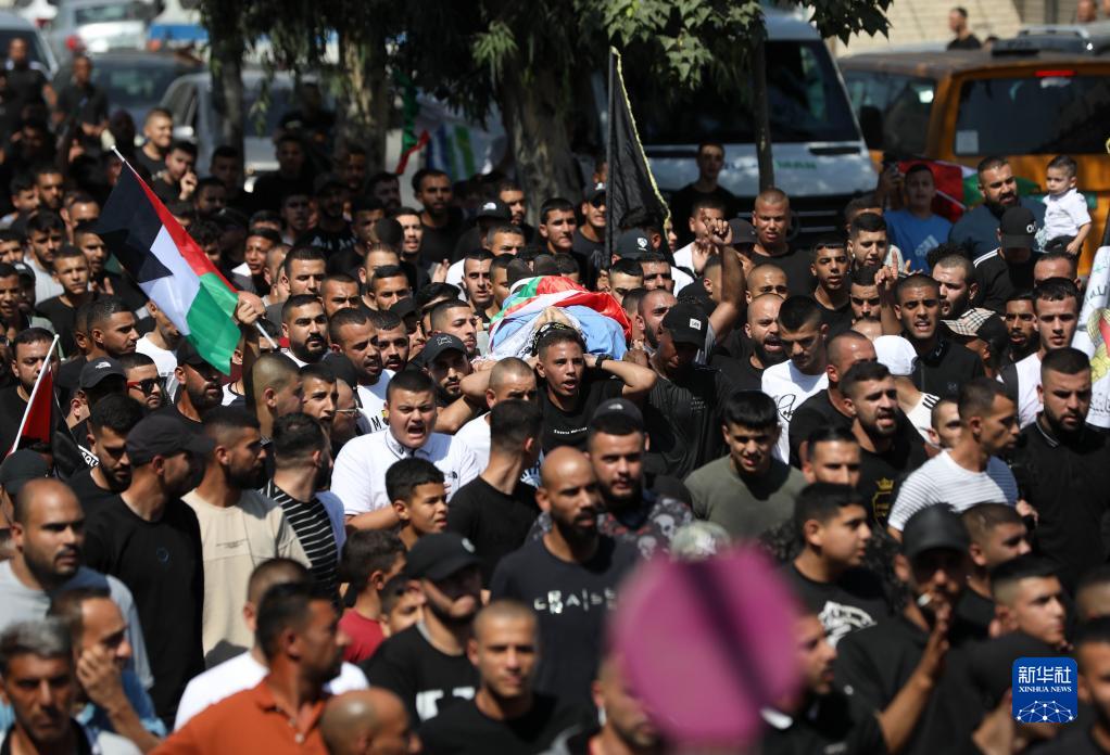 9月5日,人们在约旦河西岸城市图勒凯尔姆参加一名在冲突中身亡的巴勒斯坦人的葬礼。