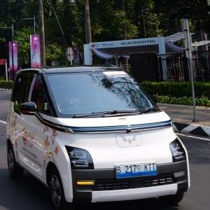 9月6日,在印度尼西亚雅加达,一辆五菱新能源车Air ev行驶在第43届东盟峰会会场附近。