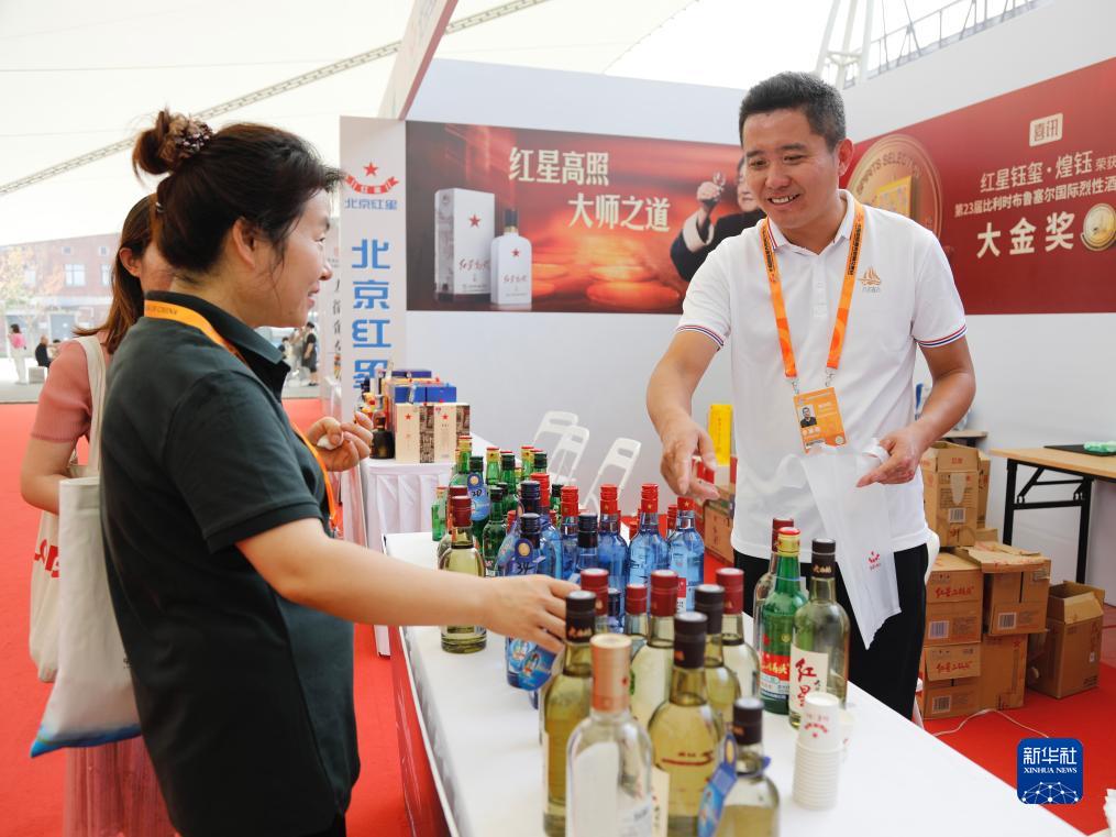 9月6日,观众在服贸会北京老字号创新发展体验区购买商品。