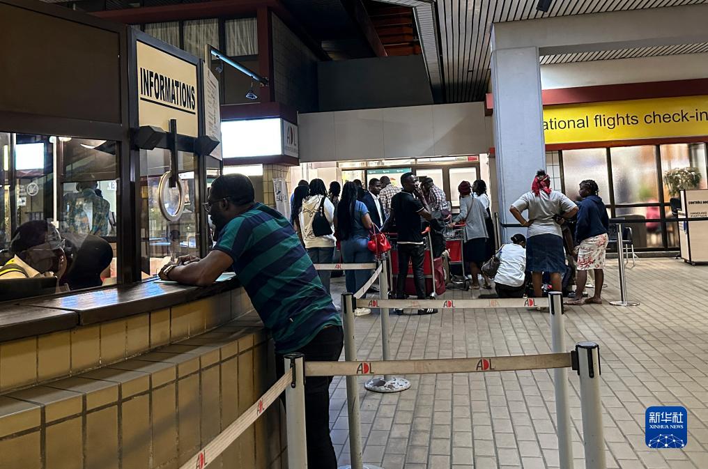 9月6日,在加蓬首都利伯维尔,人们在利伯维尔国际机场大厅内排队(手机照片)。