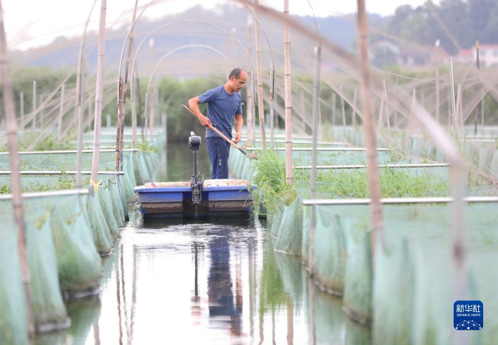 近年来,湖南省衡阳市衡东县白莲镇因地制宜发展特色水产养殖产业,通过网箱内养鳝鱼、网箱外养四大家鱼的混养模式,充分利用水塘资源,提升经济效益,带动当地集体经济发展,助力乡村振兴。